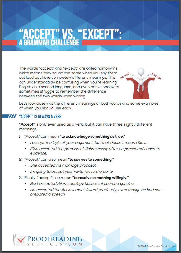 "Accept" vs. "Except": A Grammar Challenge - http://bit.ly/2vNfxKQ